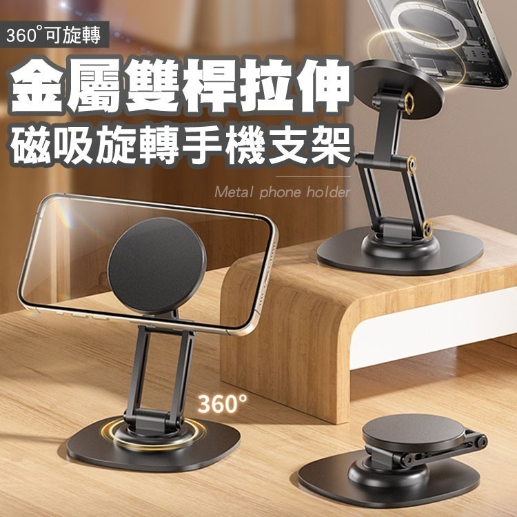 名稱:360度金屬雙桿拉伸磁吸旋轉手機支架