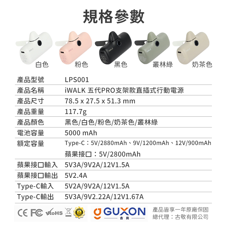 產品名稱:iWALK 五代PRO支架款直插式行動電源