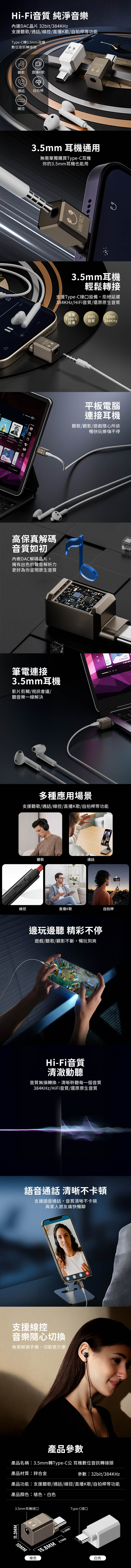 產品名稱:3.5mm轉Type-C公 耳機數位音訊轉接頭