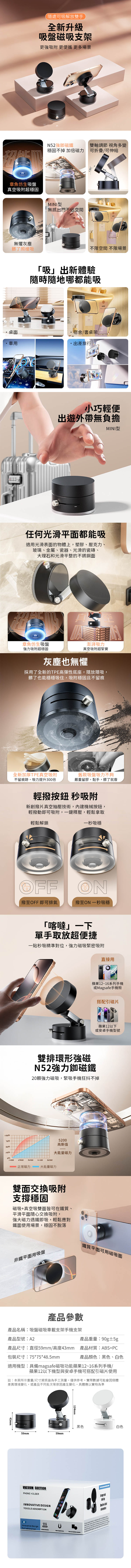 ⚠️若不輕壓支架底座,吸附不夠緊密,支架容易脫落。請使用前特別注意⚠️