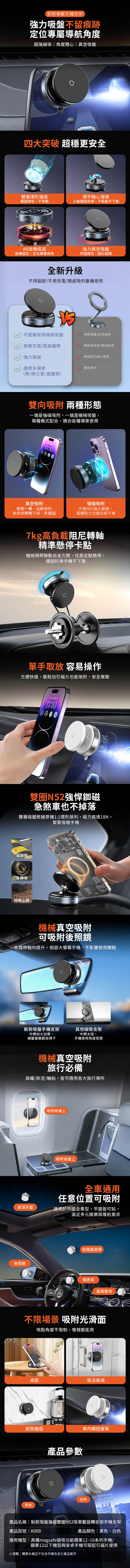 ⚠️若不輕壓支架底座,吸附不夠緊密,支架容易脫落。請使用前特別注意⚠️