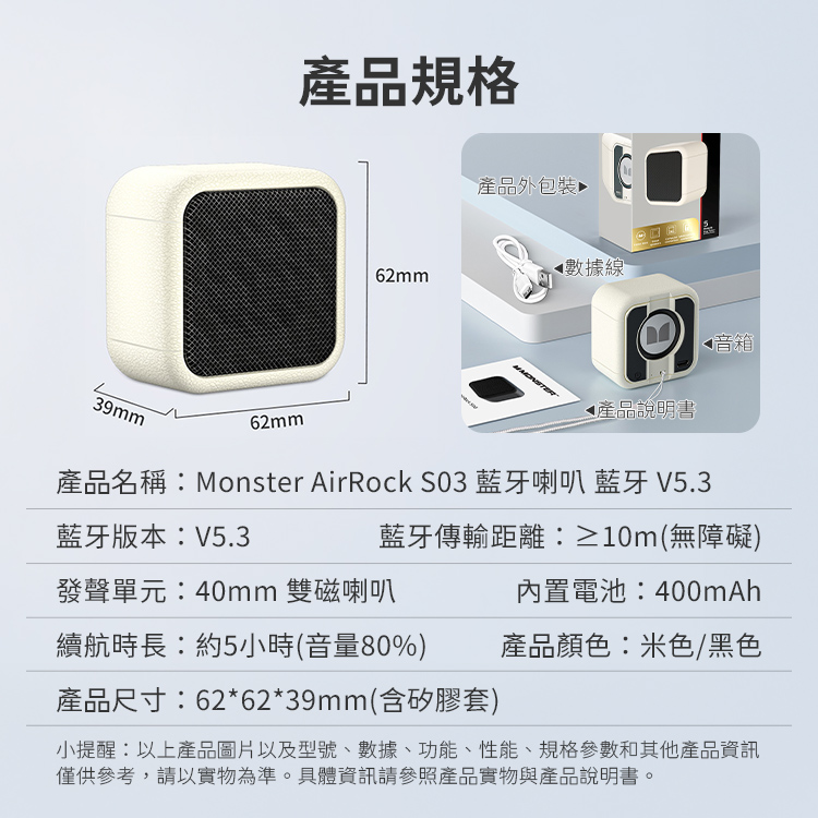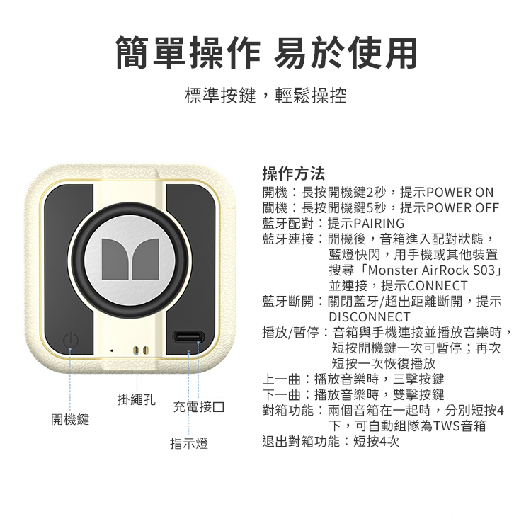 產品名稱:Monster AirRock S03 藍牙喇叭 藍牙 V5.3