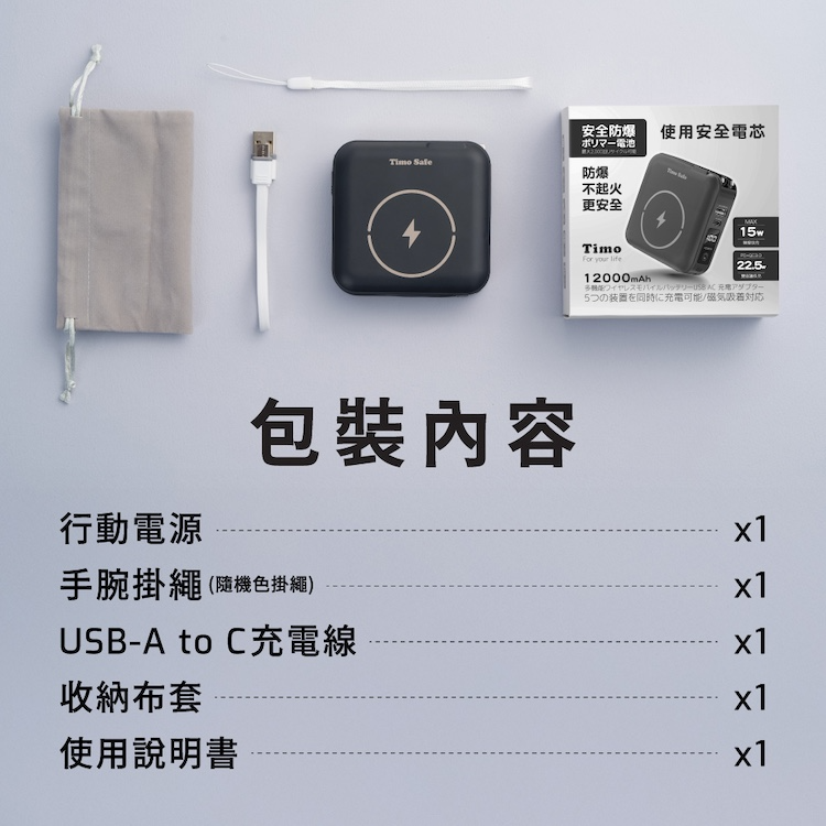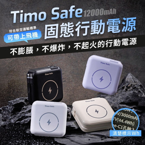 【Timo】Safe 安全防爆電芯 多功能磁吸固態行動電源12000mAh (有標示Wh)