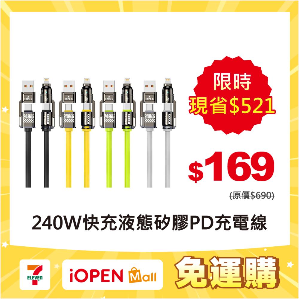 4.USB-C to TYPE-C:240W(Max),適用 MacBook/手機/iPad/行動電源等