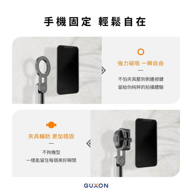 手機若無磁吸功能,可使用手機夾固定