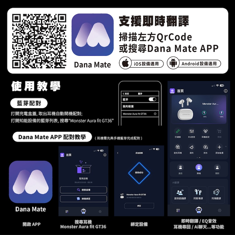 *耳機部分功能需搭配指定Dana Mate APP使用
