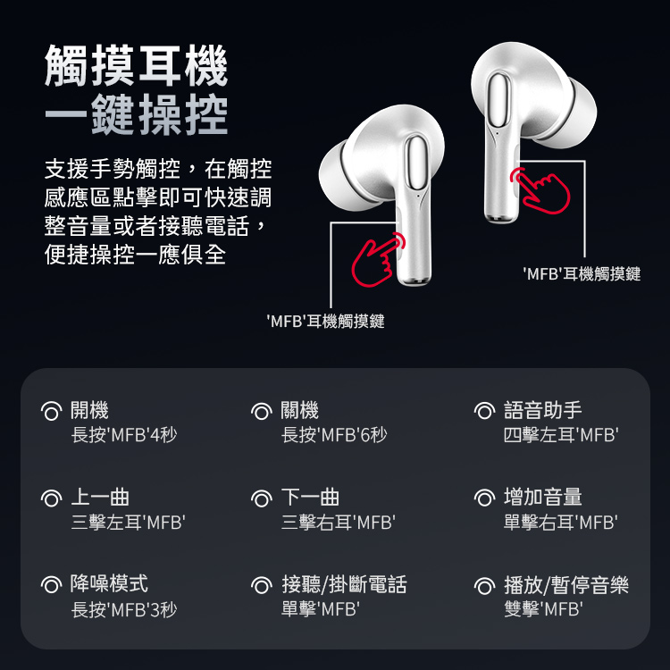 降噪模式:長按'MFB'3秒