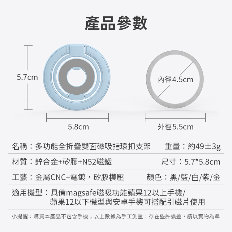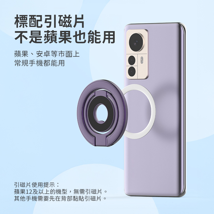 *引磁片使用提示:蘋果12及以上的機型,無需引磁片。其他手機需要先在背部黏貼引磁片。