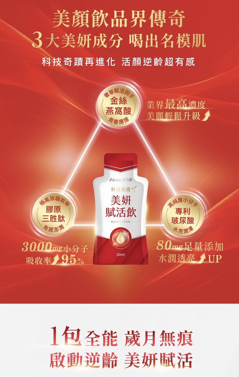 [🚚總部現貨] Aicom艾力康 科技燕窩美妍賦活飲 (30ml/10包入)