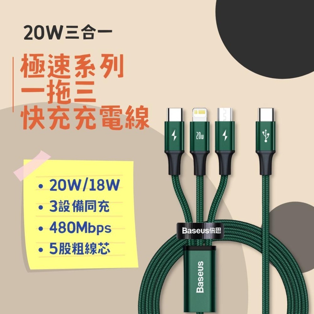 Baseus倍思 極速一拖三快充充電線 Type-C to iPhone線 Micro線 Type-C線 蘋果傳輸線 2