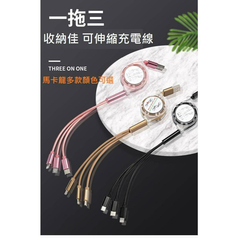伸縮便攜 馬卡龍 三合一充電線 安卓充電線 TYPE-C充電線 IPHONE充電線 蘋果充電線 伸縮充電線 一對三