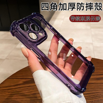 • 自帶鏡頭膜四角防摔太空殼-透紫
