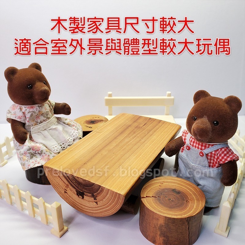 森林家族絕版老棕熊 X2、圍欄、長椅、木製家具組。二手無盒不拆售。私人收藏,無退換貨服務,完美主義者請繞道。