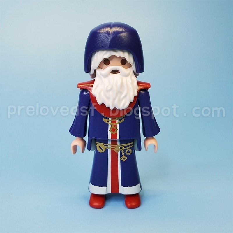 Playmobil 9096 摩比人偶 X1。煉金術士老爺爺,白髮白鬍鬚、上半身有紅色立體衣領、附帽子。約 2017 年的摩比,二手無盒,私人收藏無退換貨服務,完美主義者請繞道。
