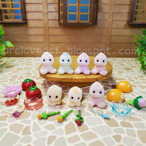 Sylvanian Families 森林家族絕版妖精玩偶 X7、小配件 X14。二手無盒。小妖精植絨玩偶 7隻物況不一,有的很新、有的較舊有壓痕,但初步目測植絨無破損。