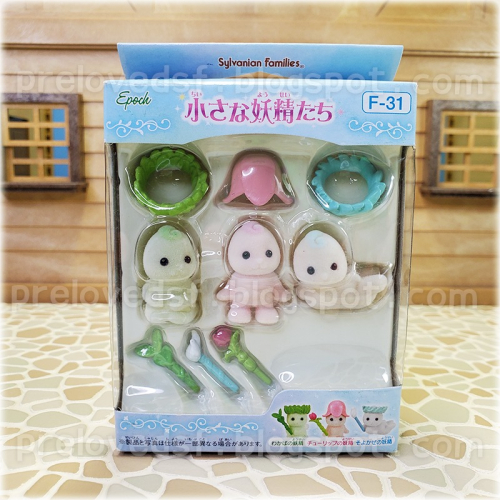 Sylvanian Families 森林家族小妖精組合 X1。盒裝完整未拆封。收納多年外盒還是會有歲月痕跡,根據過往收藏經驗,裡面的塑膠配件可能有出油的風險,完美主義者、八角魔人、龜毛盒控、對二手老物有任何疑慮請勿下單!不希望收藏多年的心愛玩具在外流浪很久被棄領甚至惡意退貨。