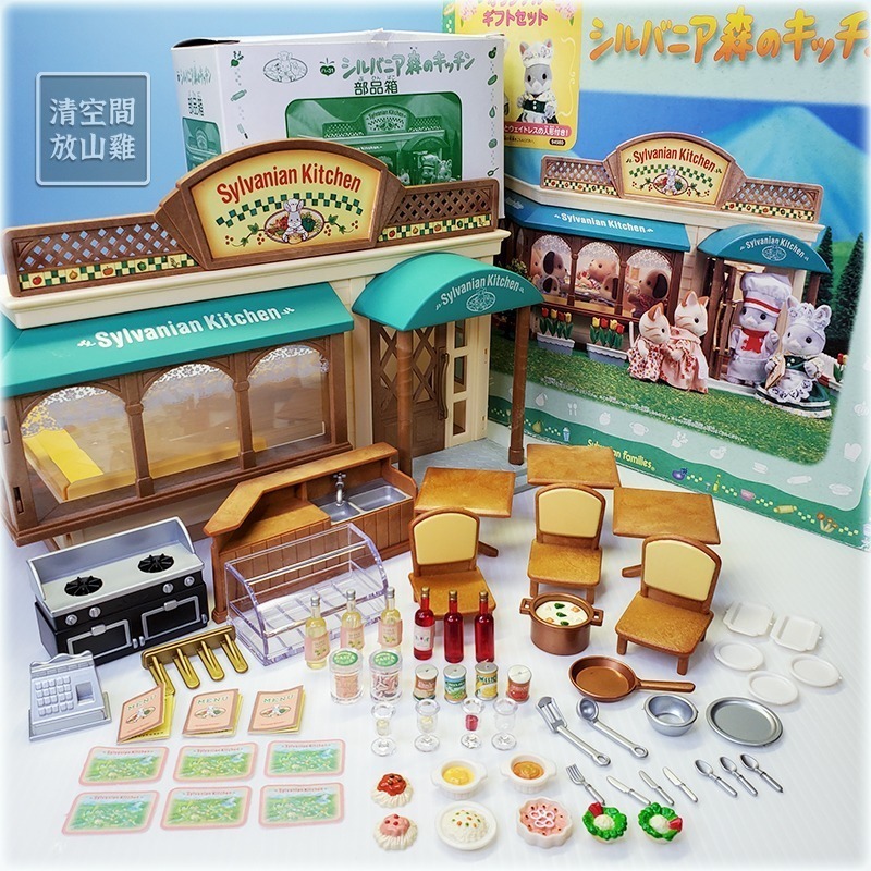 Sylvanian Families 森林家族絕版綠餐廳。二手有盒、有配件、無玩偶。這組森林綠餐廳為森之廚房系列2008年日版「シルバニア森のキッチン ハ-31」