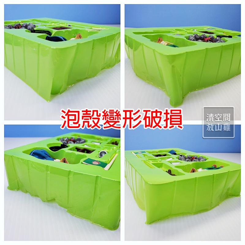 非第一手收藏,外盒非常老舊有折痕、變形、磨損、髒污等歲月痕跡。內部綠色泡殼還在,但泡殼局部破損變形,材質偏軟薄。這組有前主人使用痕跡,到我這手捨不得玩收藏多年,上架前才把他們拿出來拍,真的是很捨不得。