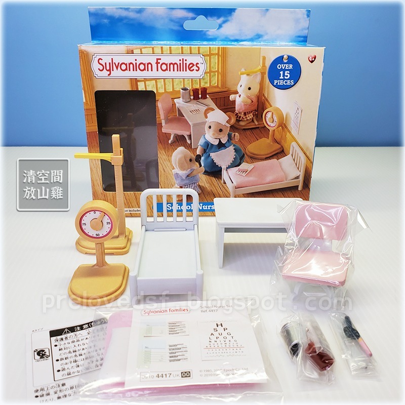 Sylvanian Families 森林家族學校保健室配件組。二手有盒,不含鼠玩偶。學校保健室配件組原為2010年英版 Flair #4417 School Nurse Set 的配件。