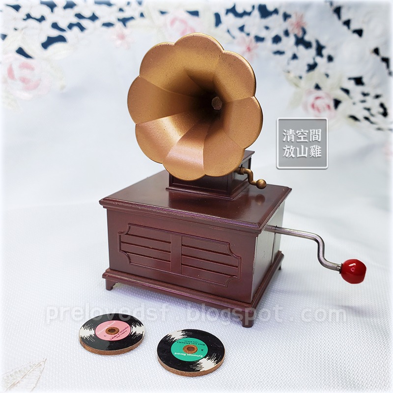 Sylvanian Families 森林家族室絕版留聲機造型音樂盒 X1、唱片小配件 X2。二手無盒。留聲機造型音樂盒為森林家族1988年的絕版老物,網路上有看過 MADE IN JAPAN 的版本,而這組是MIC,不知道有沒有森友收藏過MIT的?