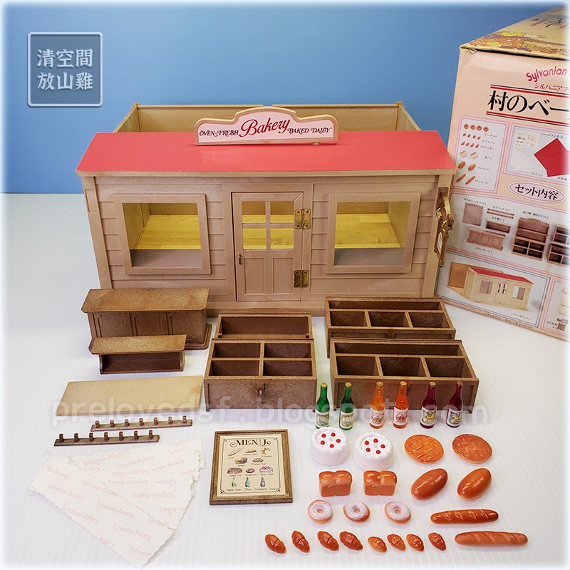 Sylvanian Families 森林家族早期日版麵包店。二手有盒。這組麵包店為1987年日版「村のベーカリー ハ-08」,日本製。日版這款兩側沒有牆,需另外購入早期組合屋的配件。這款店面最棒的是可用早期組合屋配件擴充。