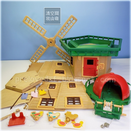 Sylvanian Families 森林家族老風車零件拆售。二手無盒,請選擇零件規格。風車屋底部標示1990年 MADE IN TAIWAN,部分小配件不是同一組風車拆下來的。風車物況老舊,有的牆面明顯變色,有的零件有塑膠白化現象,這區老物只適合補件或DIY改造用。