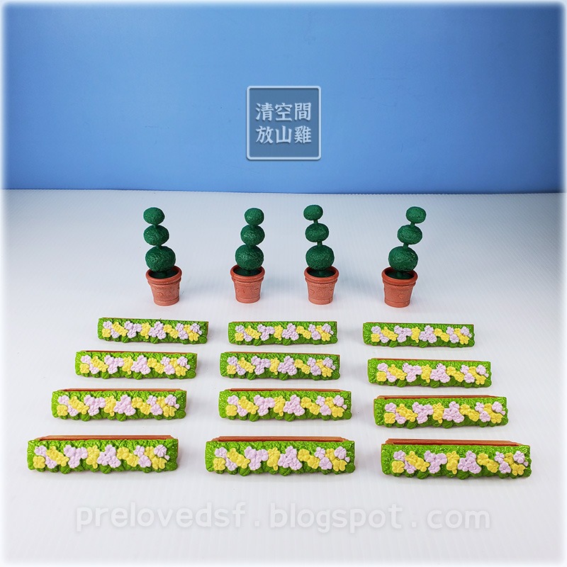 Sylvanian Families 森林家族早期英版紅色大飯店(Regency Hotel Flair #4513)零件,造景盆栽 X4、窗戶花盆 X12 合售。二手無盒有歲月痕跡。