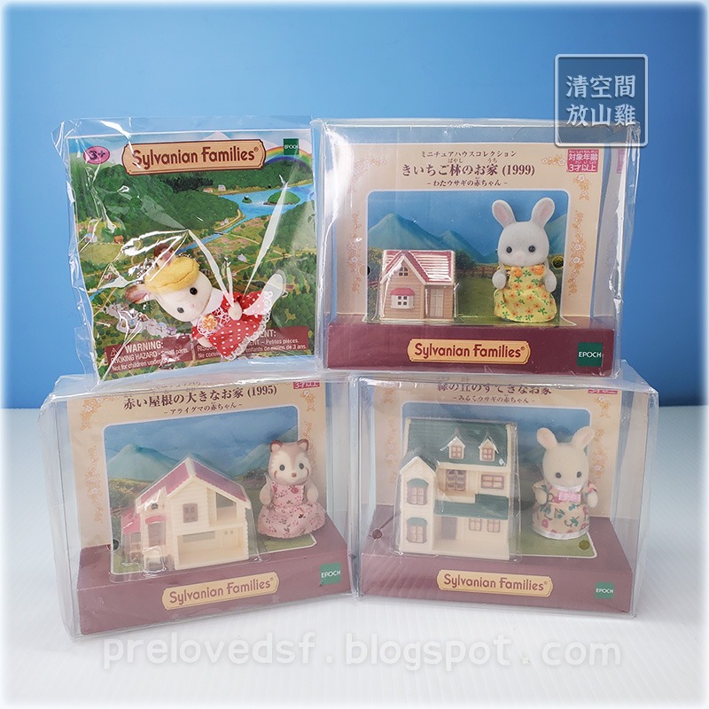 Sylvanian Families 森林家族浣熊寶寶迷你赤根屋組、牛奶兔寶寶迷你綠丘組、灰棉兔寶寶迷你木莓屋組、可可兔寶寶吊飾鑰匙圈,共四組不拆售。