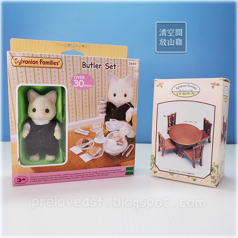 Sylvanian Families 森林家族歐版貓管家午茶組(#2669 Butler Set)X1。二手有盒,盒況不佳有變形、磨損等歲月痕跡。
