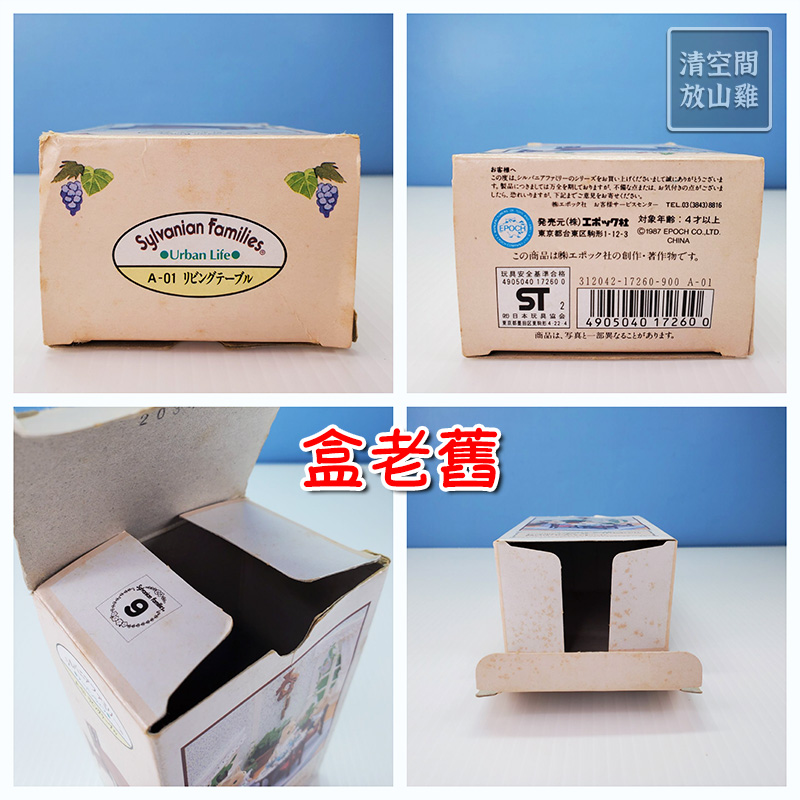 城市系列桌椅組非第一手收藏,二手有盒但盒況老舊有破損、變形、黃斑、髒汙等歲月痕跡。