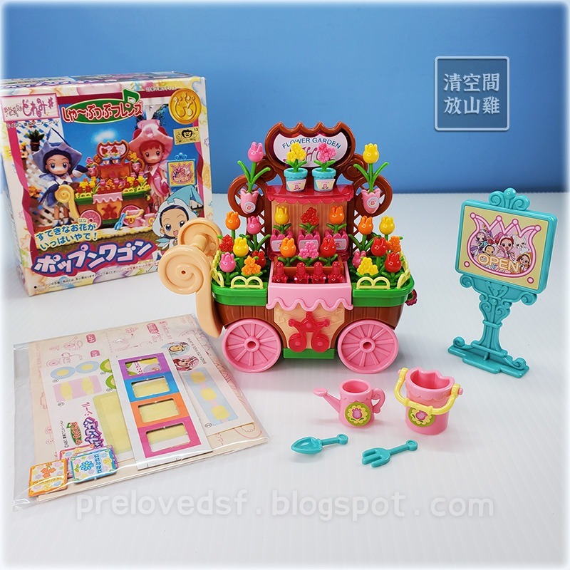 內容物保存良好,推車底部標示 BANDAI 2000 MADE IN JAPAN。花朵、花盆可獨立自由搭配。