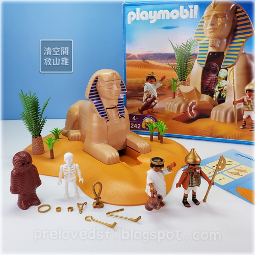 Playmobil 4242 摩比埃及系列人面獅身與木乃伊,約2008年的摩比。二手有盒,盒況老舊磨損變形。盒子原本全拆壓扁長期收納,重組後內側以膠帶固定,盒控請勿下單。