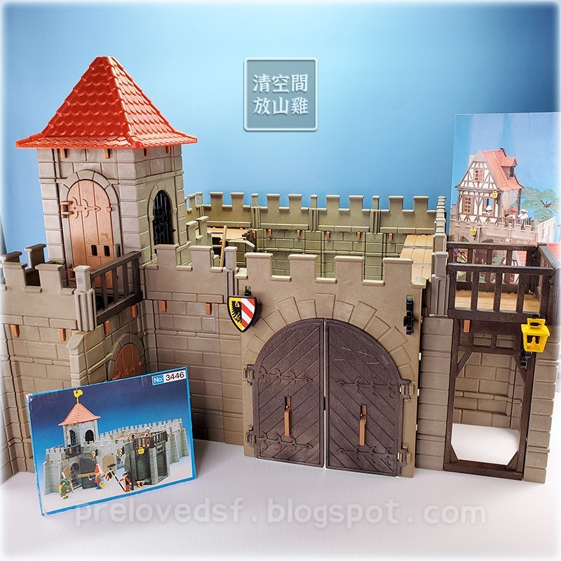 Playmobil System 3446 摩比早期約198X年的老城堡組合。二手無盒,附一小張局部盒圖、一份組裝說明書。盒圖與說明書都非常老舊,有污漬、黃斑等明顯歲月痕跡。