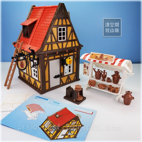 Playmobil 6524 摩比中世紀陶器店,約2016年的摩比。二手無盒,原為無印刷紙箱袋裝產品,原包裝已丟。