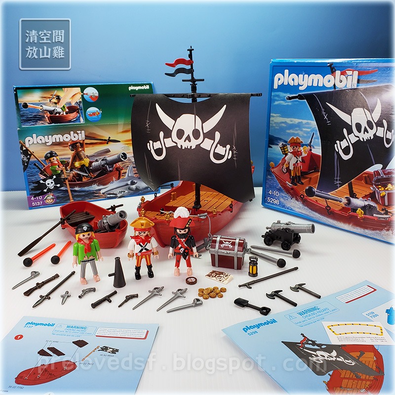 Playmobil 5298 摩比海盜系列骷髏海盜船,約2013年的摩比。二手有盒,盒況老舊破損變形,紙盒原本全拆壓扁長期收納,組合後盒況不佳,盒控請勿下單。