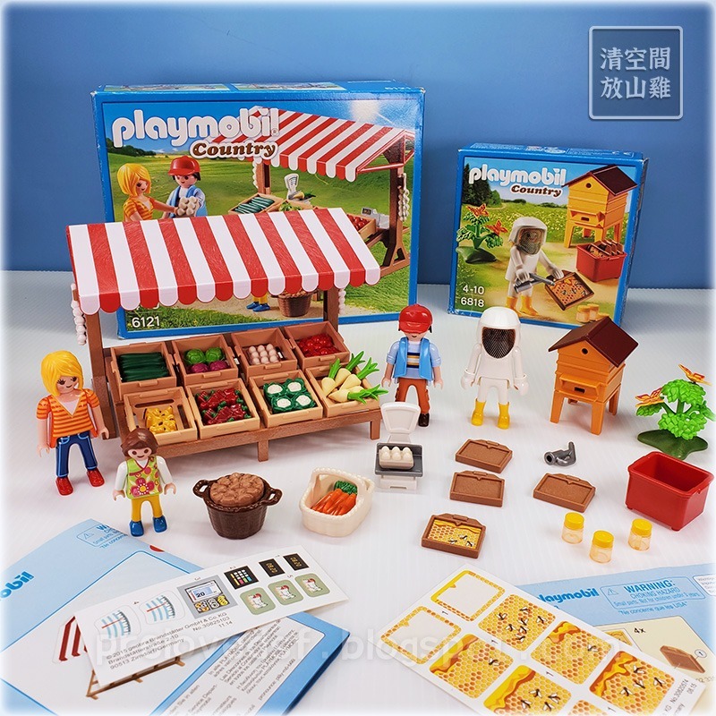Playmobil 6121 摩比農夫市集蔬菜水果攤,約2015年的摩比。Playmobil 6818 摩比養蜂人,約2016年的摩比。