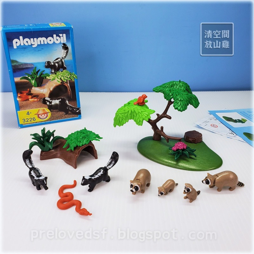 Playmobil 3226 摩比臭鼬與蛇,約2003年的摩比。二手有盒,盒況老舊,原本拆掉壓扁長期收納,盒控勿下單。無說明書。