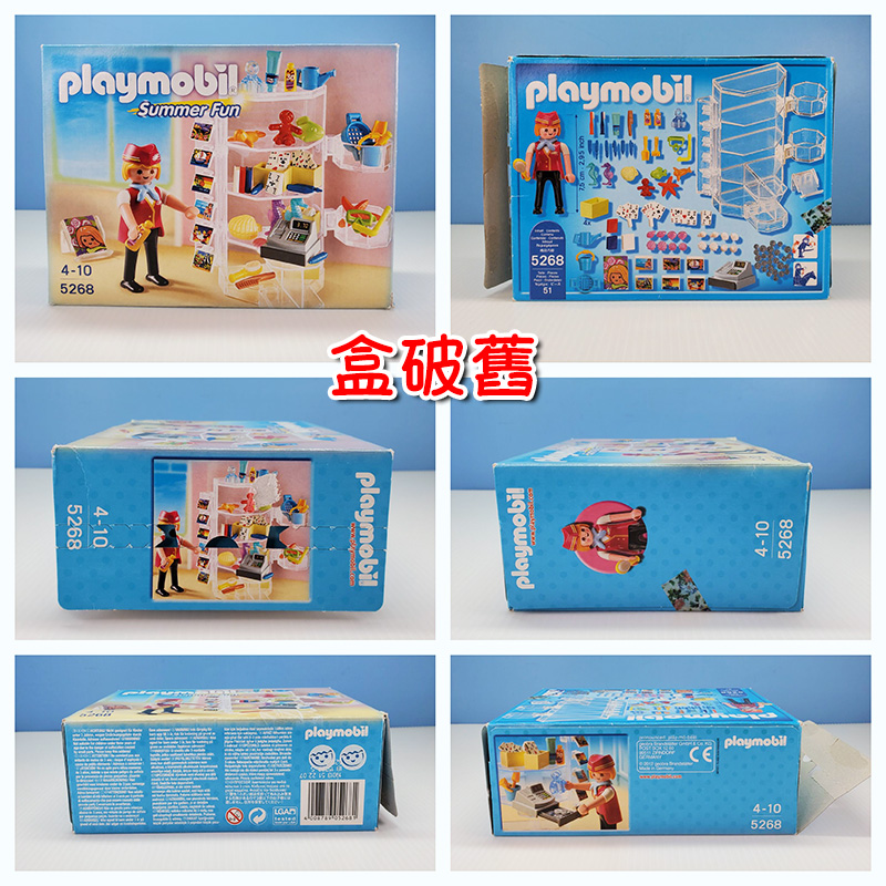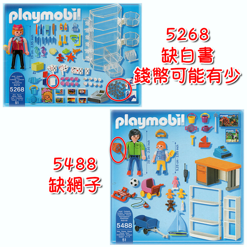 Playmobil 5268 缺一本白色塑膠書、錢幣不確定缺幾枚。透明展示架有刮痕等歲月痕跡。貼紙未貼、紙雜誌未折。附原廠組裝說明書。