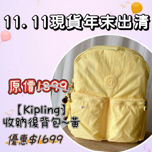 • 【Kipling】多拉鍊收納後背包-黃 【Kipling】多拉鍊收納後背包-黃