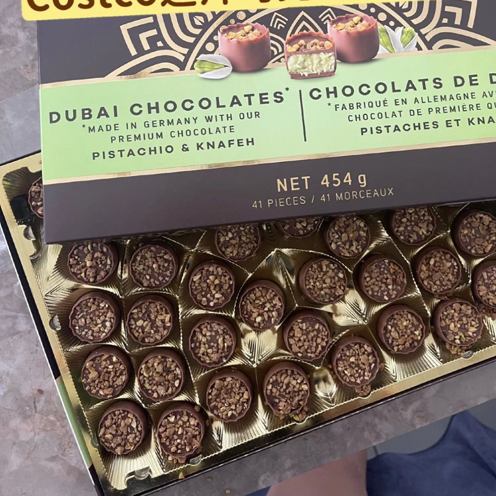 這款話題十足的奢華甜點是以牛奶巧克力、開心果和酥脆的 Kataifi 千層酥皮組成,內餡則是濃郁的開心果芝麻醬,外層包裹著絲滑的巧克力外殼,美國那邊可以說是搶購一空🇺🇸