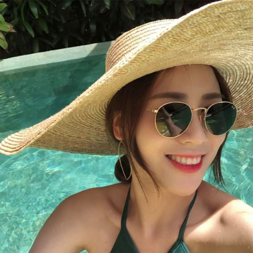 這次是復古感十足的金色圓框 搭配他們深墨綠鏡片