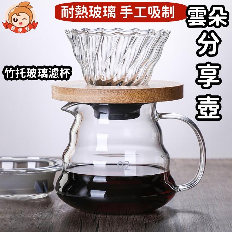 雲朵壺咖啡壺🔥真便宜現貨🔥玻璃壺 雲朵壺 竹托濾杯 咖啡下接壺 耐熱玻璃壺 咖啡下接壺 分享壺 手沖咖啡壺