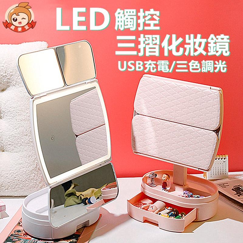 LED補光燈化妝鏡真便宜現貨🔥化妝鏡 270°旋轉 三折多倍鏡 化妝鏡 三色燈光+亮度可調 美妝彩妝鏡 鏡子