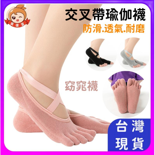 交叉瑜珈襪🔥真便宜現貨🔥窈窕襪 瘦身襪 襪子 腳背交叉系帶露背露趾瑜珈襪 純棉襪 防滑襪 五指襪 休閒襪 五趾襪