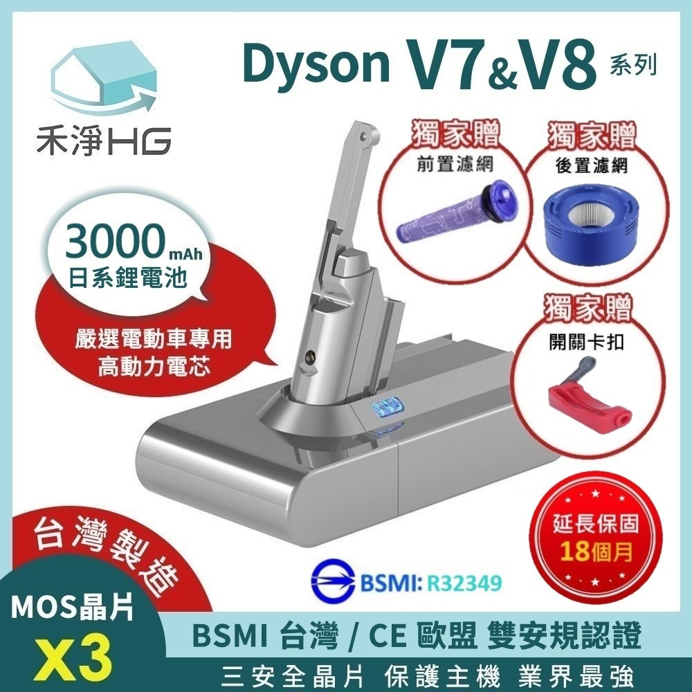 商品名稱:【禾淨家用HG】Dyson戴森 適用V7.V8/SV10.SV11 DC8300 3000mAh 副廠吸塵器配件 鋰電池(贈前置+後置濾網+卡扣)
