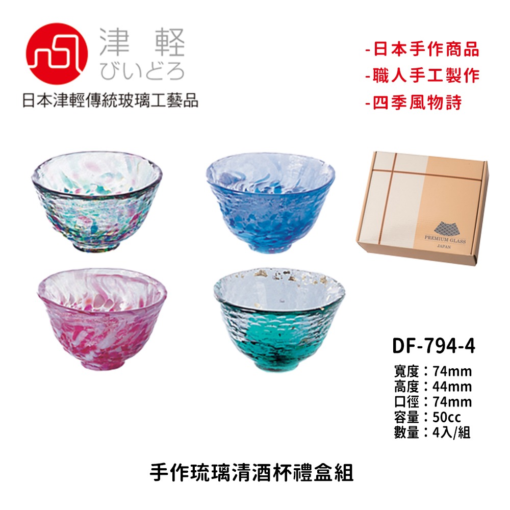 日本津輕 手作琉璃清酒杯禮盒組 50ml (4入)|四季風物詩|傳統工藝品|台灣現貨|星羽默小舖