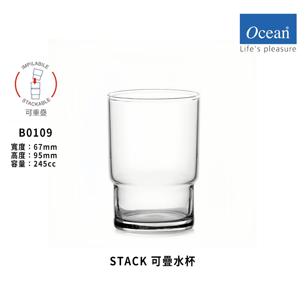Ocean Stack 可疊式水杯 245ml|無鉛水晶玻璃|商用級耐用|單入零售|星羽默小舖