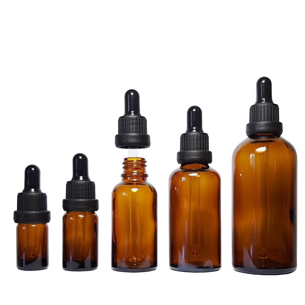 茶色避光玻璃瓶+黑色軟膠頭+螺旋中空安全黑蓋+透明玻璃滴管