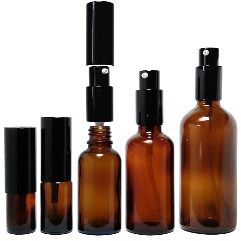 茶色避光玻璃瓶+電化鋁按壓泵頭+電化鋁蓋