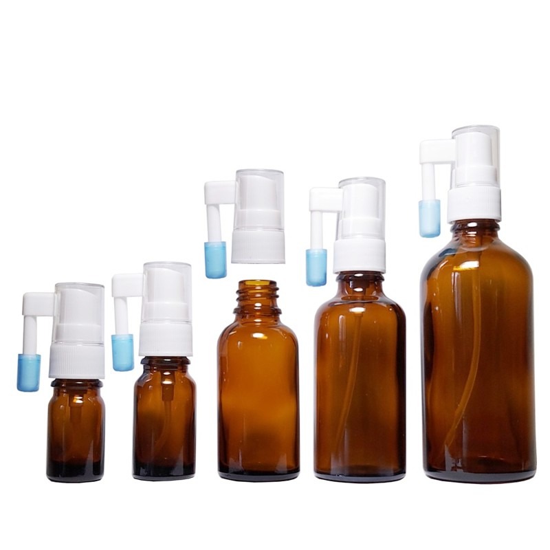 茶色玻璃搖桿鼻噴瓶。搖桿噴頭含蓋。5-100ml。花草堂